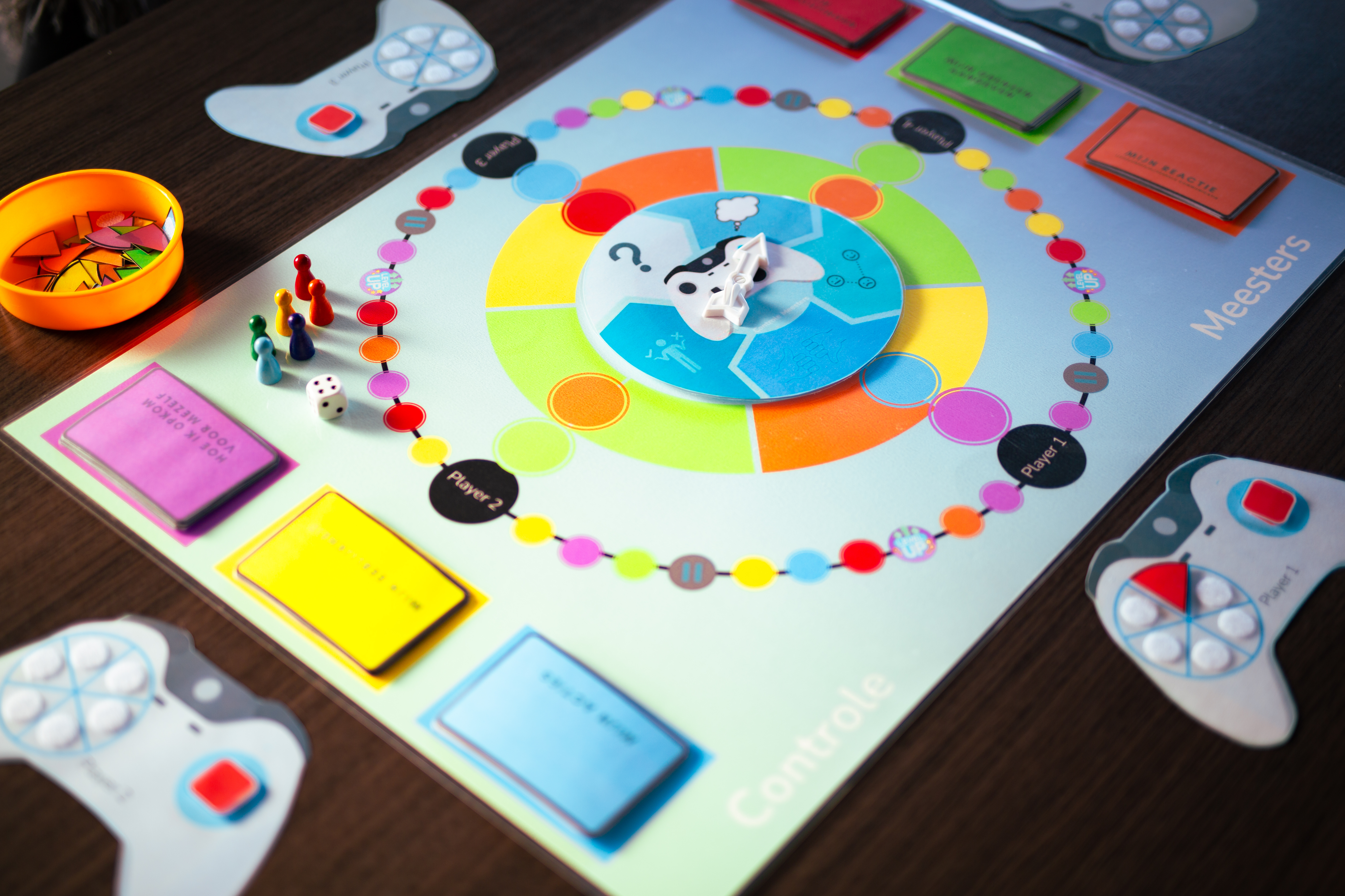 Hier begon ik dan over te denken samen met een kinderpsychologe en zo ontwikkelden we een bordspel met kaartjes, speelbaar met 4 man, dat gebaseerd is op de 5 G’s uit de psychologie en waarmee ik al langer werkte. De kaartjes zijn situaties waarin jongeren zich zouden kunnen bevinden en die moeten ze dan ontrafelen."